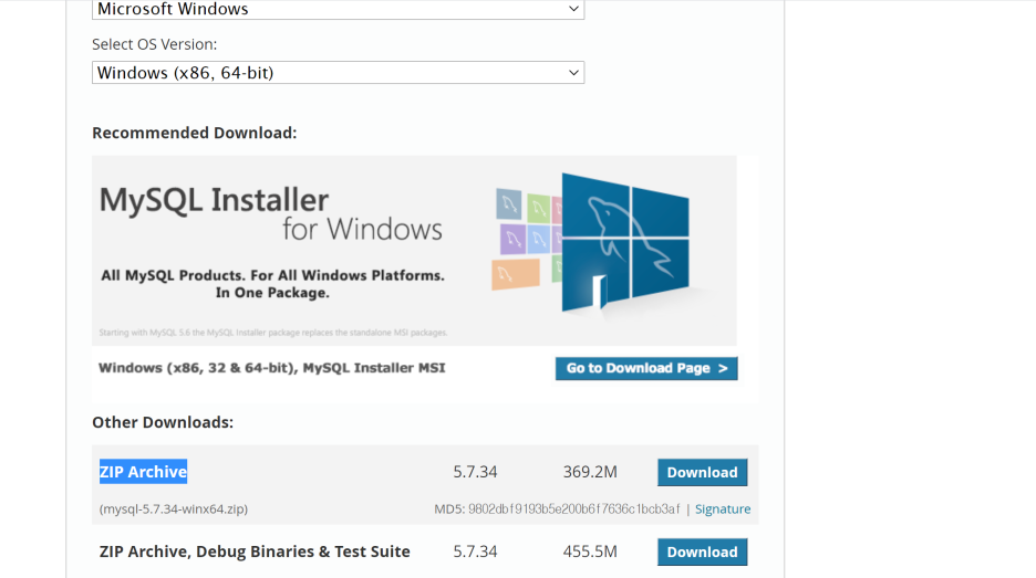 그 다음 Select OS Version: 64 비트로 바꿔주시고 ZIP Archive 클릭