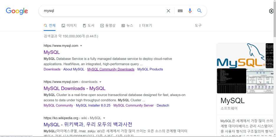 구글에 mysql 검색해서 첫 번째 보이는 MySQL에 들어가 주세요!