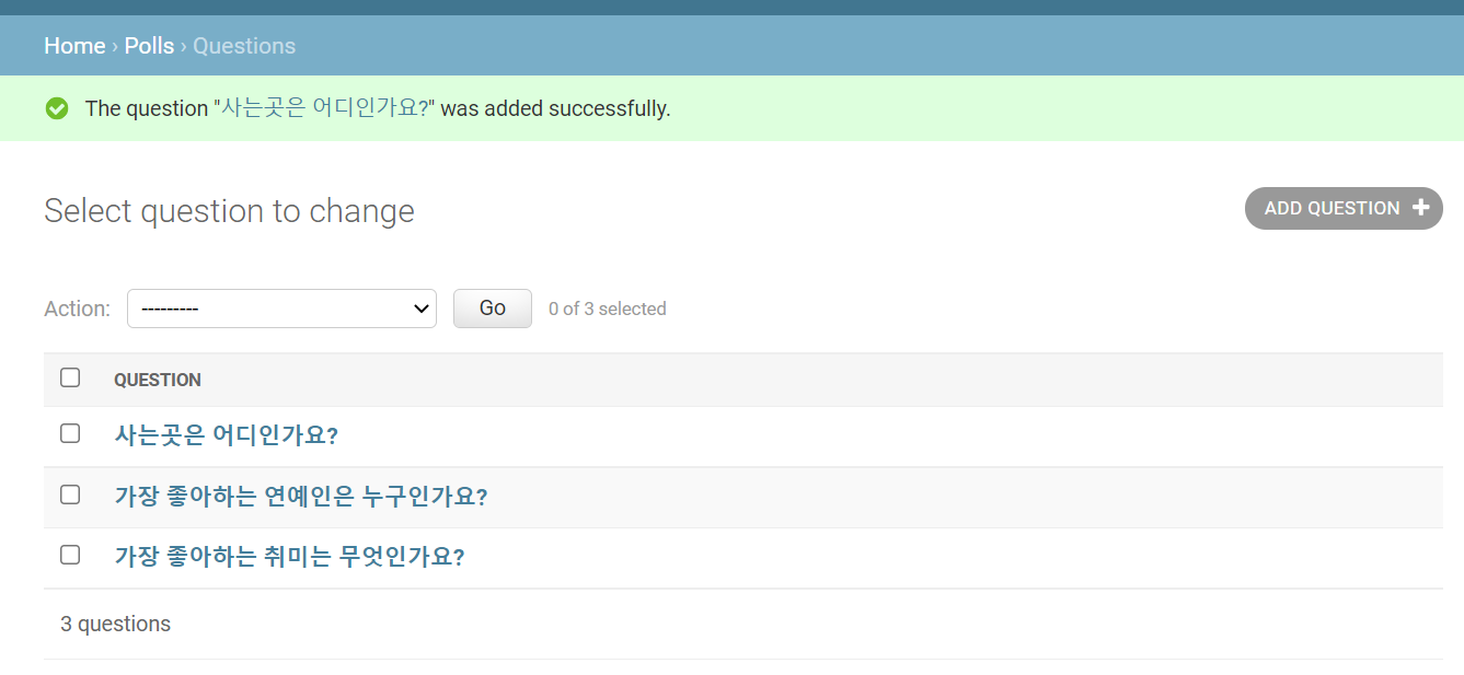 #현재 Database안에 있는 Question Table 속에 질문에 대한 목록을 가져오는 거예요