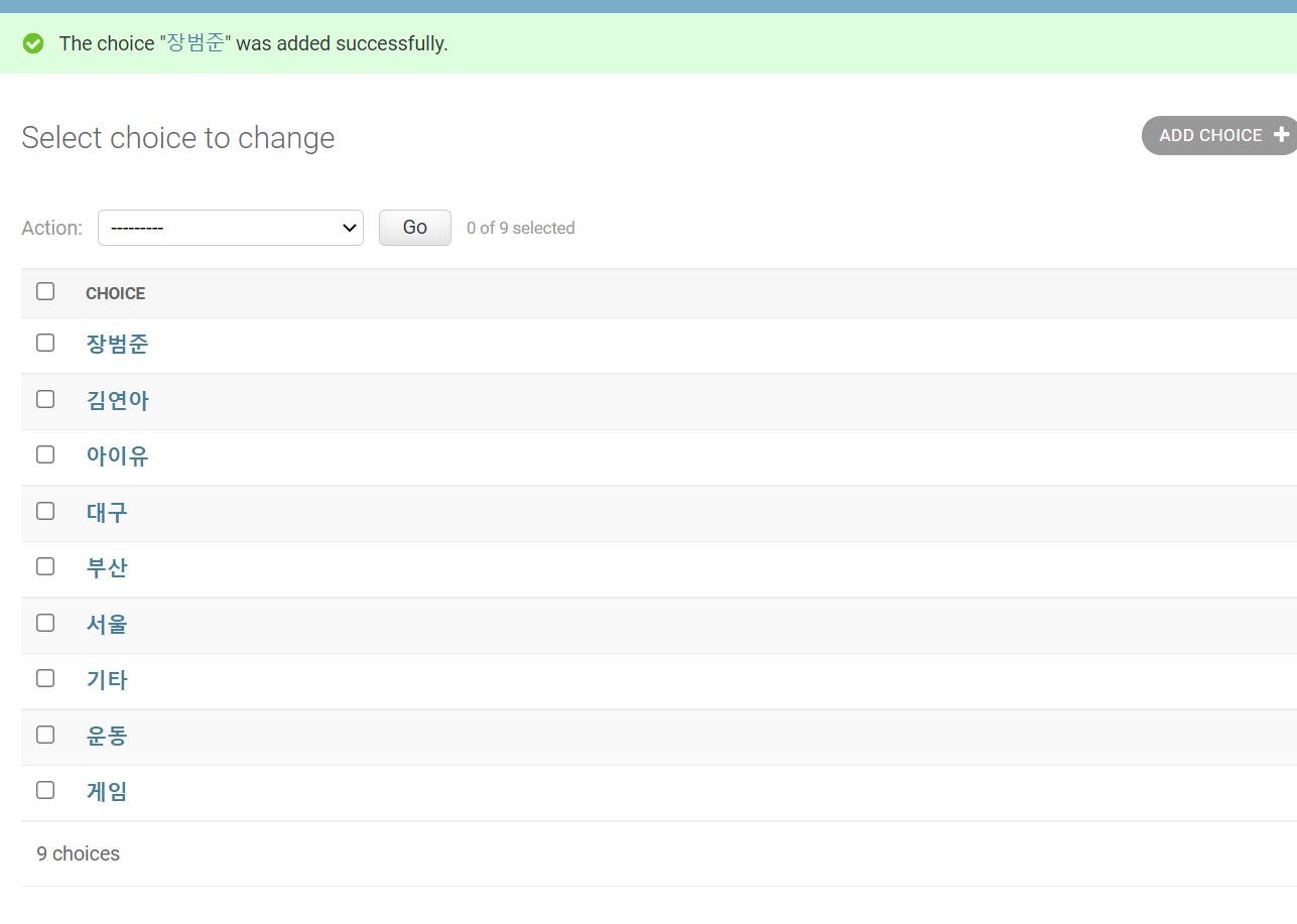 admin page에서 table의 내용 확인 수정 삭제 가능 (django가 제공해 주는 기능) 이 있어요
