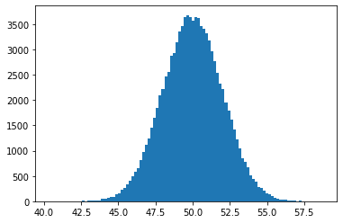 plt.hist(arr,bins=100) #bins는 100개의 간격